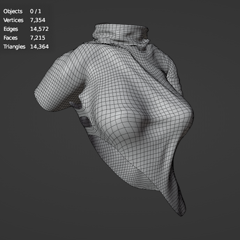 - Fully quad-based mesh (Triangles: 14,364, Faces: 7,215);